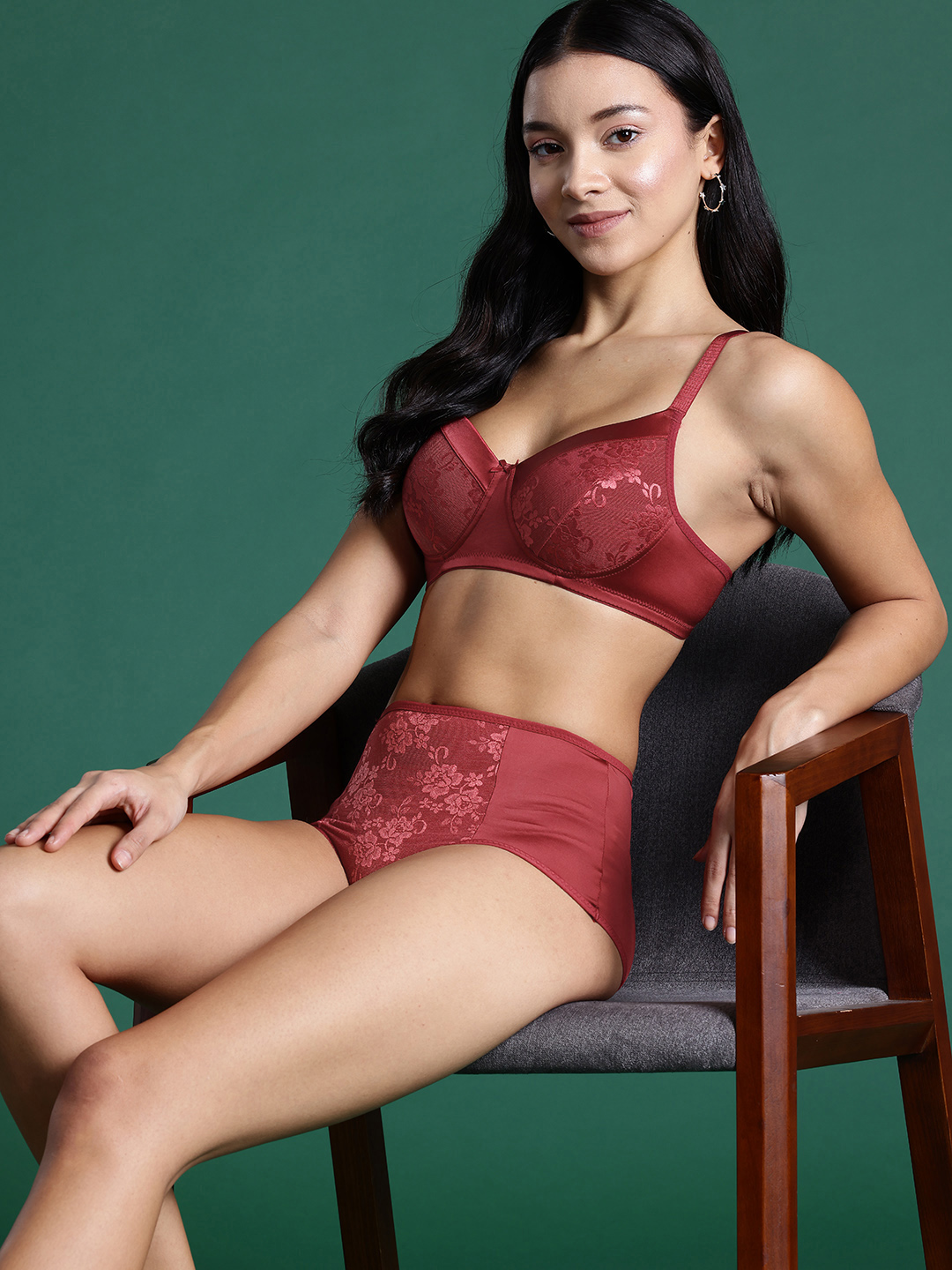 • Briefs: Maroon self-design high-rise briefs with lace detail, outer elasticated waistband, and a double-layered gusset.